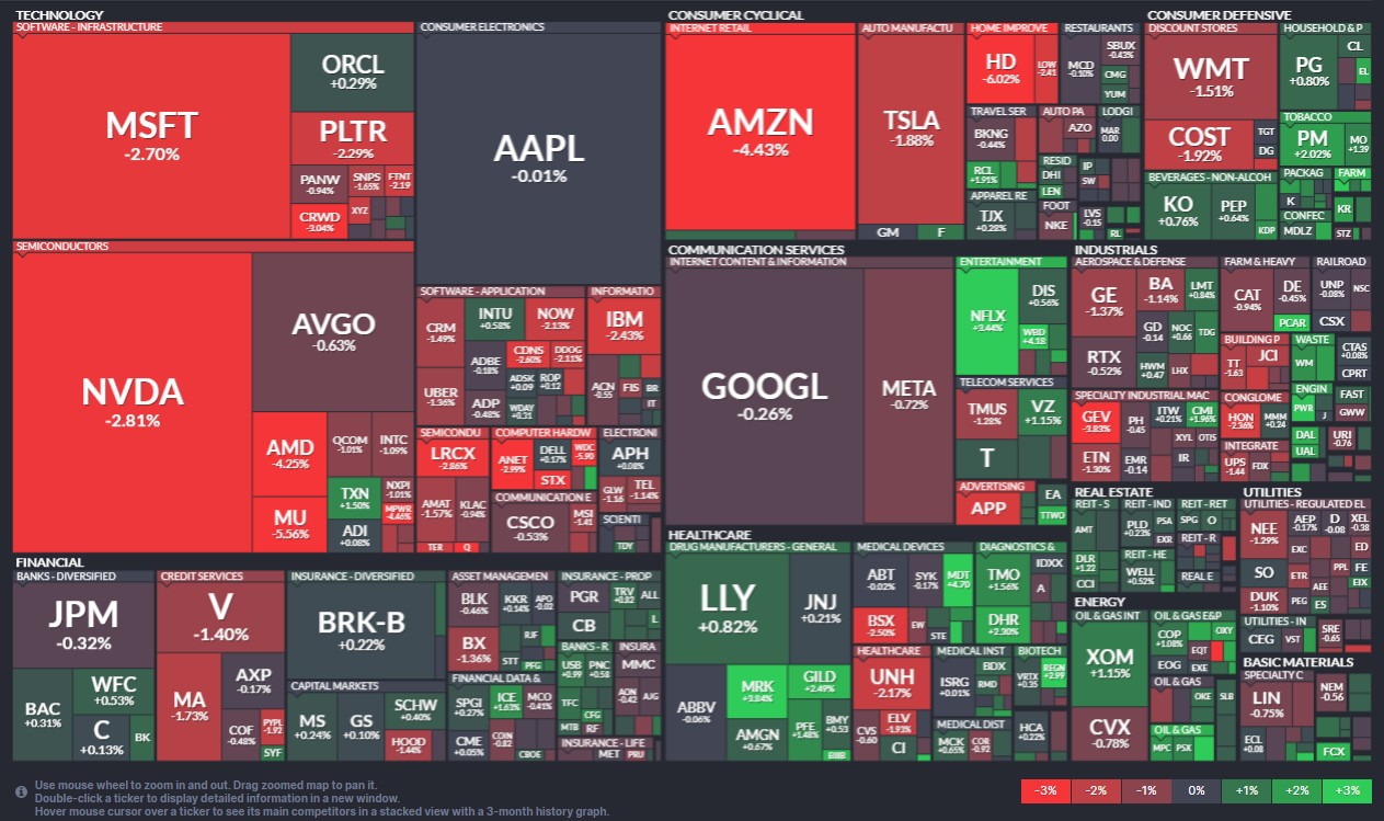 Technologieunternehmen -6,86 %: Der lange Regierungsstillstand hat Unmut in der US-Wirtschaft und Unsicherheit über den künftigen geldpolitischen Kurs gesät. Technologiewerte wie Oracle, Nvidia und Palantir leiden unter der wachsenden Risikoaversion der Anleger.