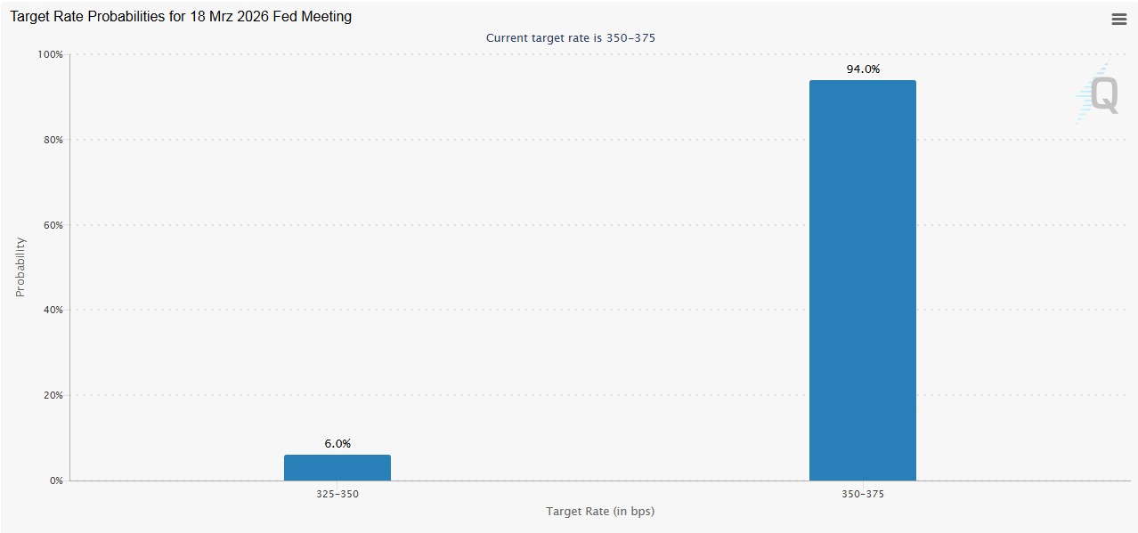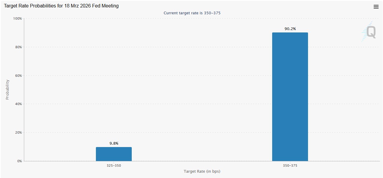 Metalle: Der Sektor der Edelmetalle zeigt sich nach wie vor hochvolatil. Silber gab um etwa 2,50% nach, während sich die Feinunze Gold mit einer Wochenperformance nahe null besser behaupten konnte. Der Goldpreis profitierte von den jüngsten, unter den Erwartungen liegenden Inflationszahlen und stabilisierte sich bei rund 5.000 USD. Bei den Industriemetallen fiel der Preis der Tonne Kupfer in London auf rund 12.875 USD (Spotpreis).