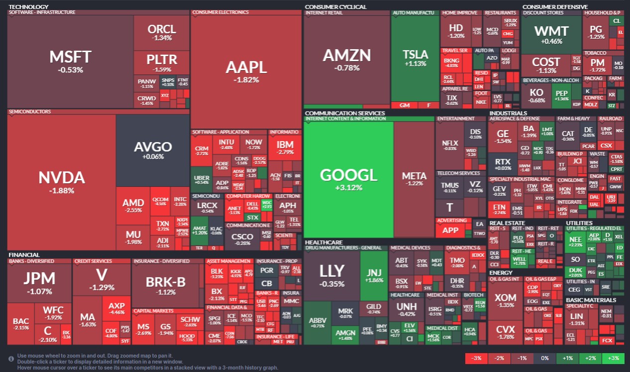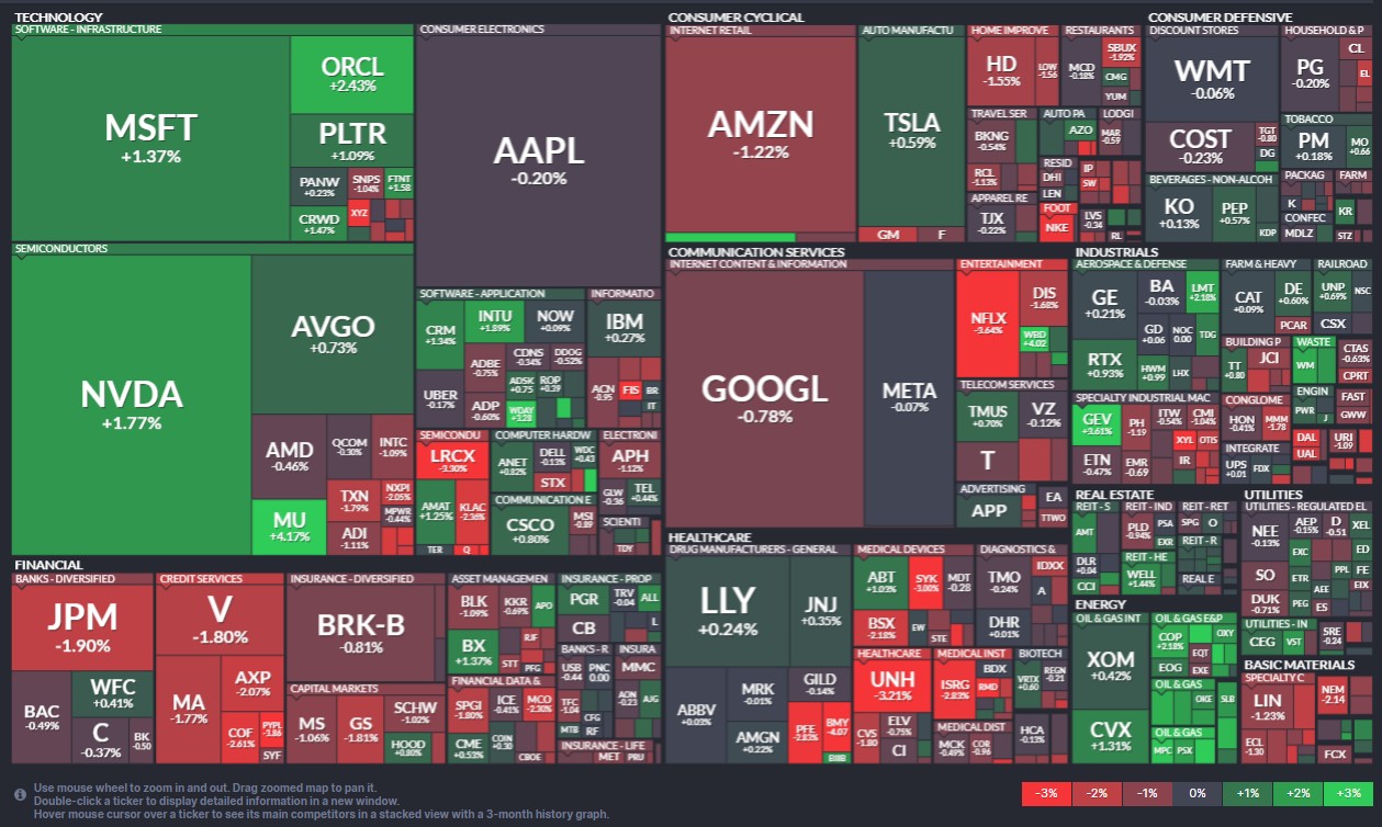 Technology companies -6,86 %: The prolonged government shutdown has caused discontent in the US economy and uncertainty about the future course of monetary policy. Technology stocks such as Oracle, Nvidia, and Palantir are suffering from growing risk aversion among investors.