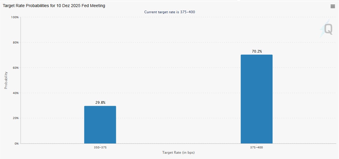 Some European indices reached new highs this week, while Wall Street remained flat after the end of the longest shutdown in history. The prolonged lack of data is increasing uncertainty about the state of the US economy. At the same time, technology stocks remain highly valued. In addition, the US Federal Reserve could postpone the next interest rate cut if it considers price stability to be more important than the weakness in the labor market.