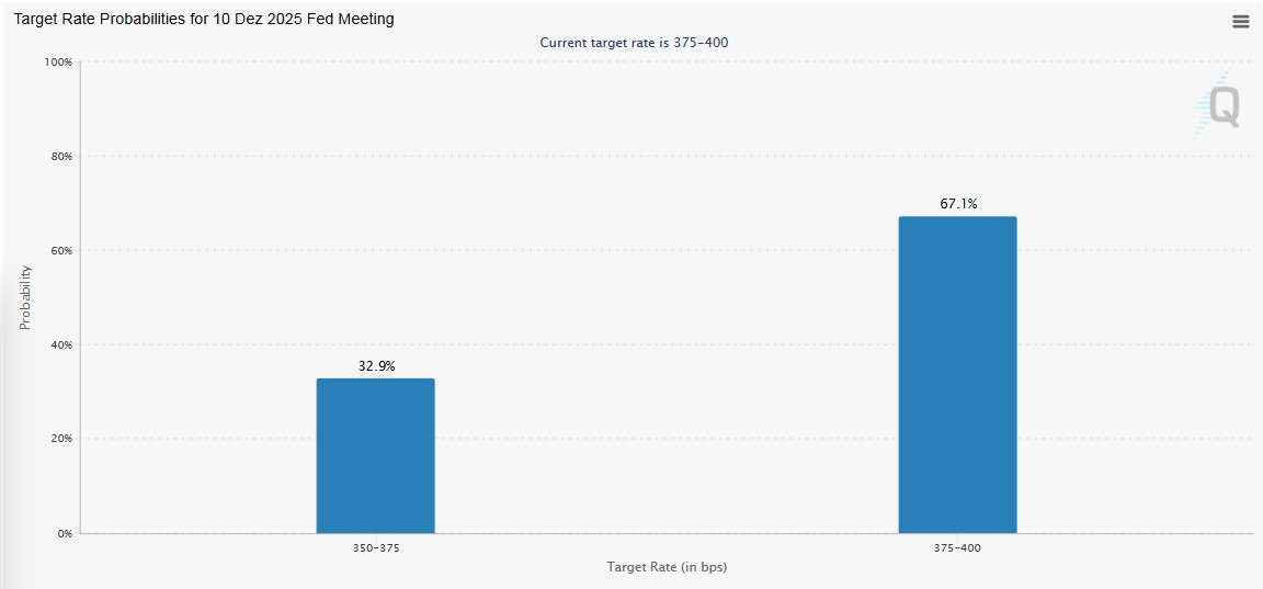 The financial markets were particularly volatile this week. They continued to be caught between conflicting assessments of US technology giants, which are considered overvalued, even though Nvidia’s results exceeded expectations. The US unemployment figures, which were published late due to the shutdown, confirmed the good health of the US labor market. Accordingly, the prospect of an interest rate cut by the Fed in December is receding somewhat. Volatility rose significantly, and this nervousness is likely to continue in the coming trading days.
