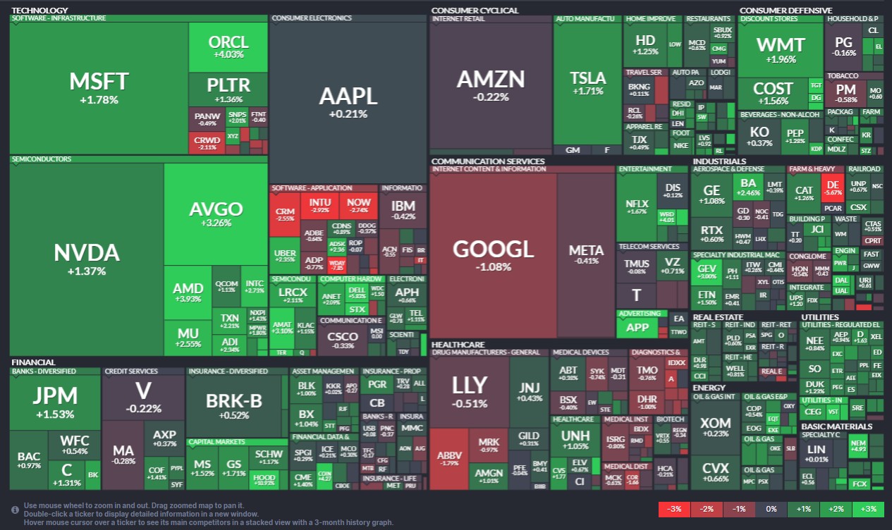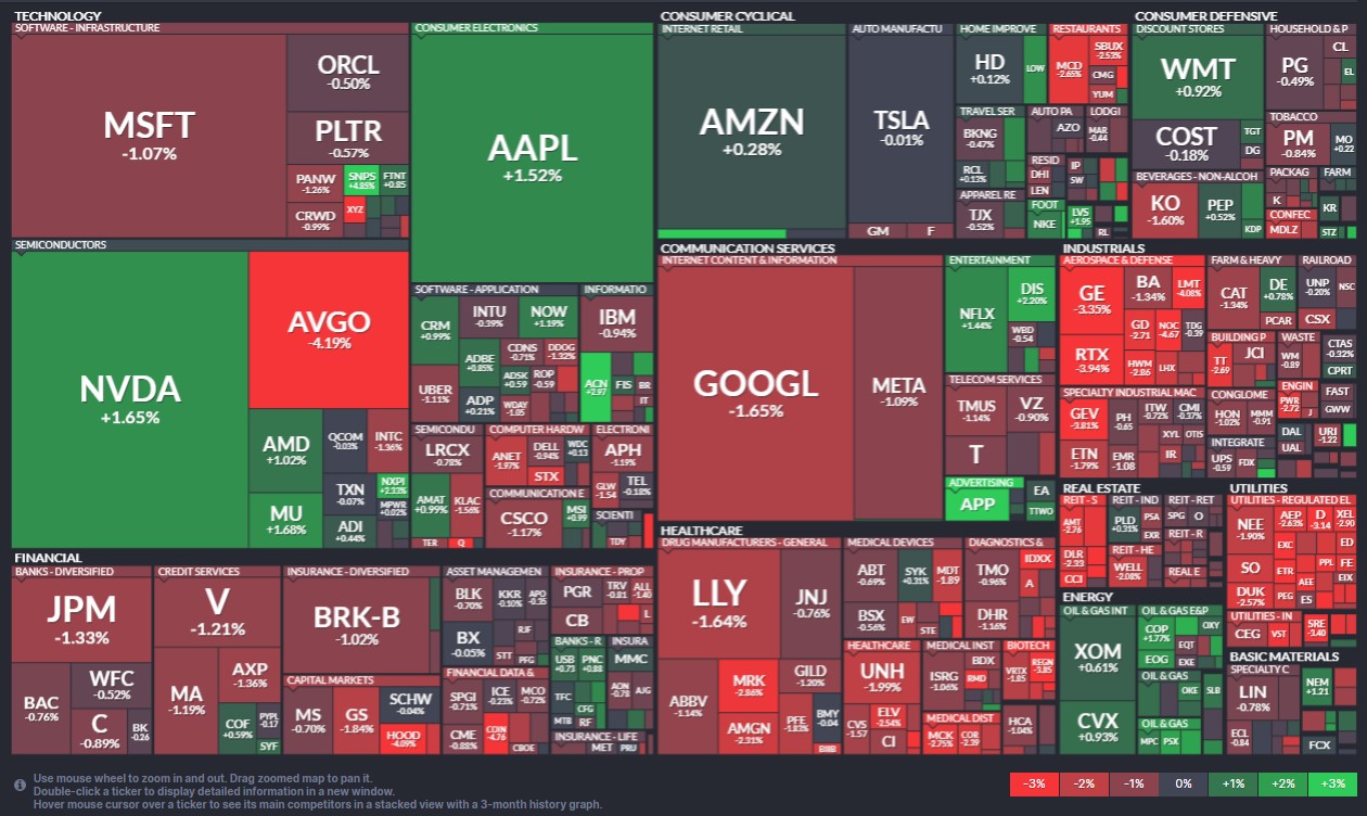 Broadcom +18.45%: Alphabet’s recent consolidation benefited the San Jose-based company, which is a development partner for the Ironwood TPUs (Tensor Processing Units) introduced by Google Cloud. The chips are used to train the Gemini 3 Pro AI.