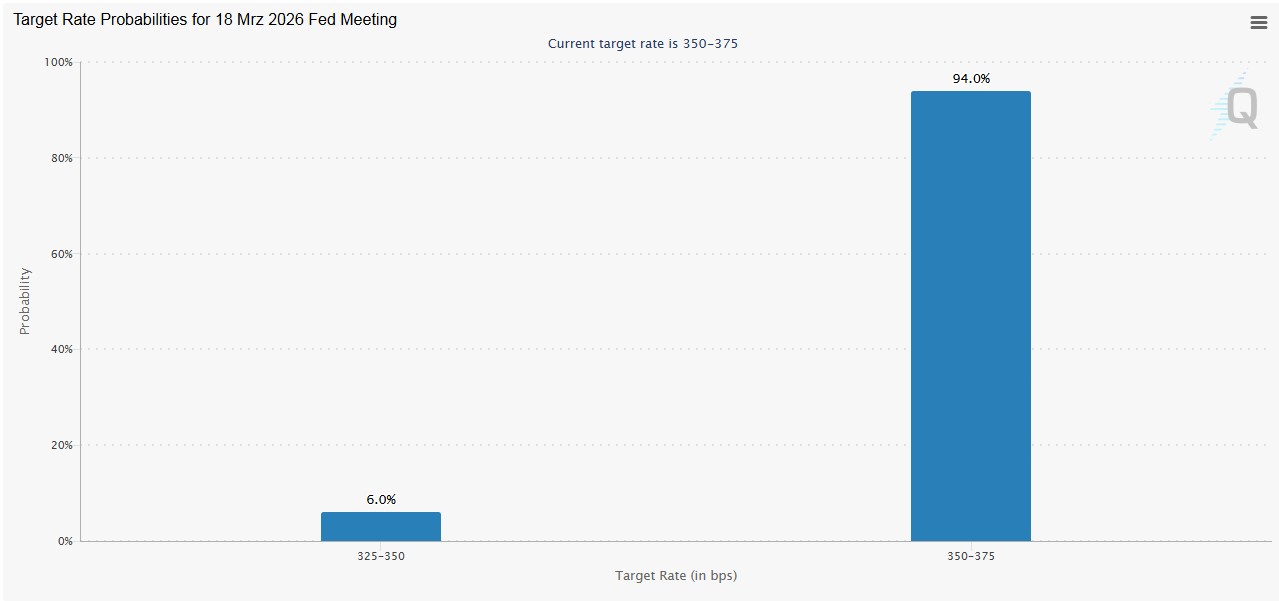 Metals: The precious metals sector remains highly volatile. Silver fell by around 2.50%, while the price of gold held up better, with a weekly performance close to zero. The price of gold benefited from the latest inflation figures, which were below expectations, and stabilized at around USD 5,000. In the industrial metals sector, the price of a ton of copper in London fell to around USD 12,875 (spot price).