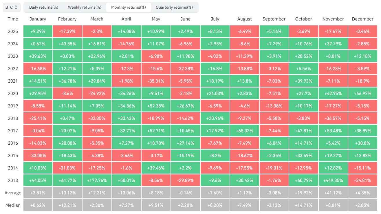 Bitcoin Monthly Returns (%)