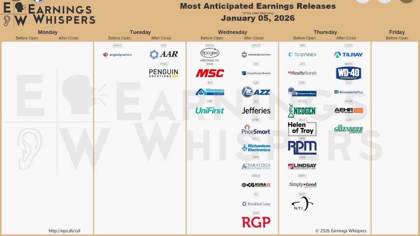 | CALM | Cal-Maine Foods | 07.01.2026 00:00 | 07.01.2026 06:00 | BMO | Yes | http://www.calmainefoods.com/investor_relations/index.html | ||||